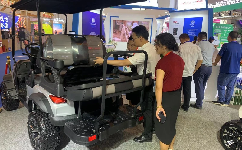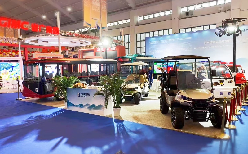 展会现场,新款电动观光车EG6232K,相比较以往电动观光车,新车更加贴合时代潮流,动力强劲,外观造型美观大方,拥有舒适实用的驾乘体验,观展者纷纷前来观摩打卡体验。